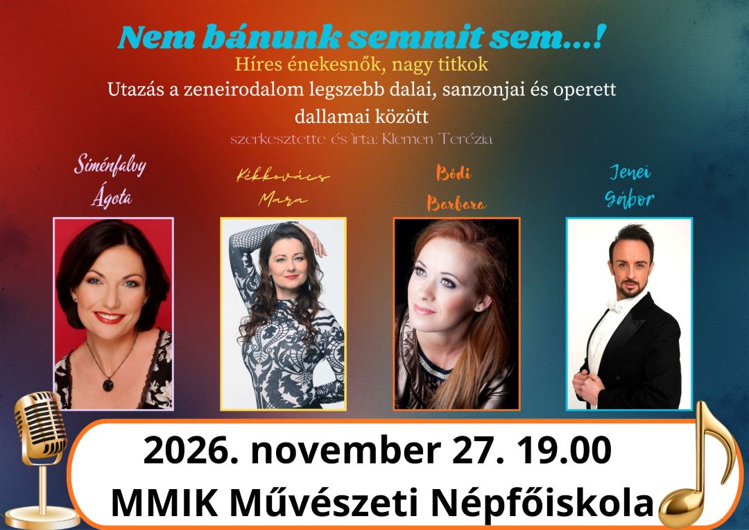 - Jegyvásárlás: https://www.jegy.hu/program/nem-banunk-semmit-sem-hires-enekesnok-nagy-titkai-183983